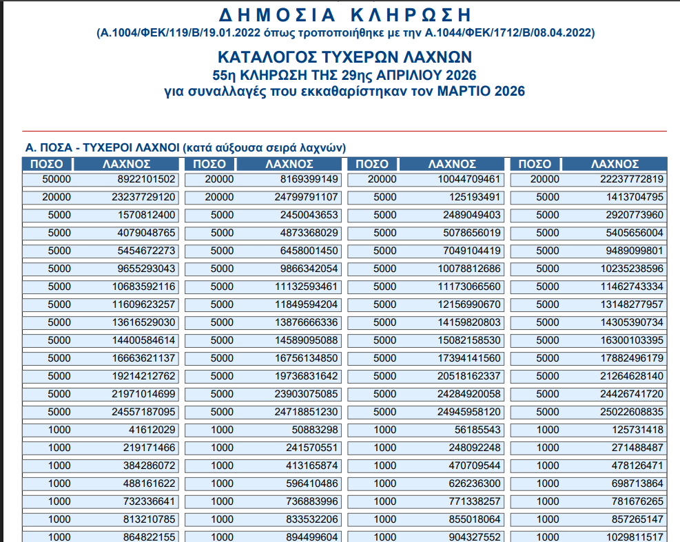 Η ΑΑΔΕ έχει προχωρήσει στην ανακοίνωση των 556 νικητών της κλήρωσης για τις αγορές ΜΑΡΤΙΟΥ.