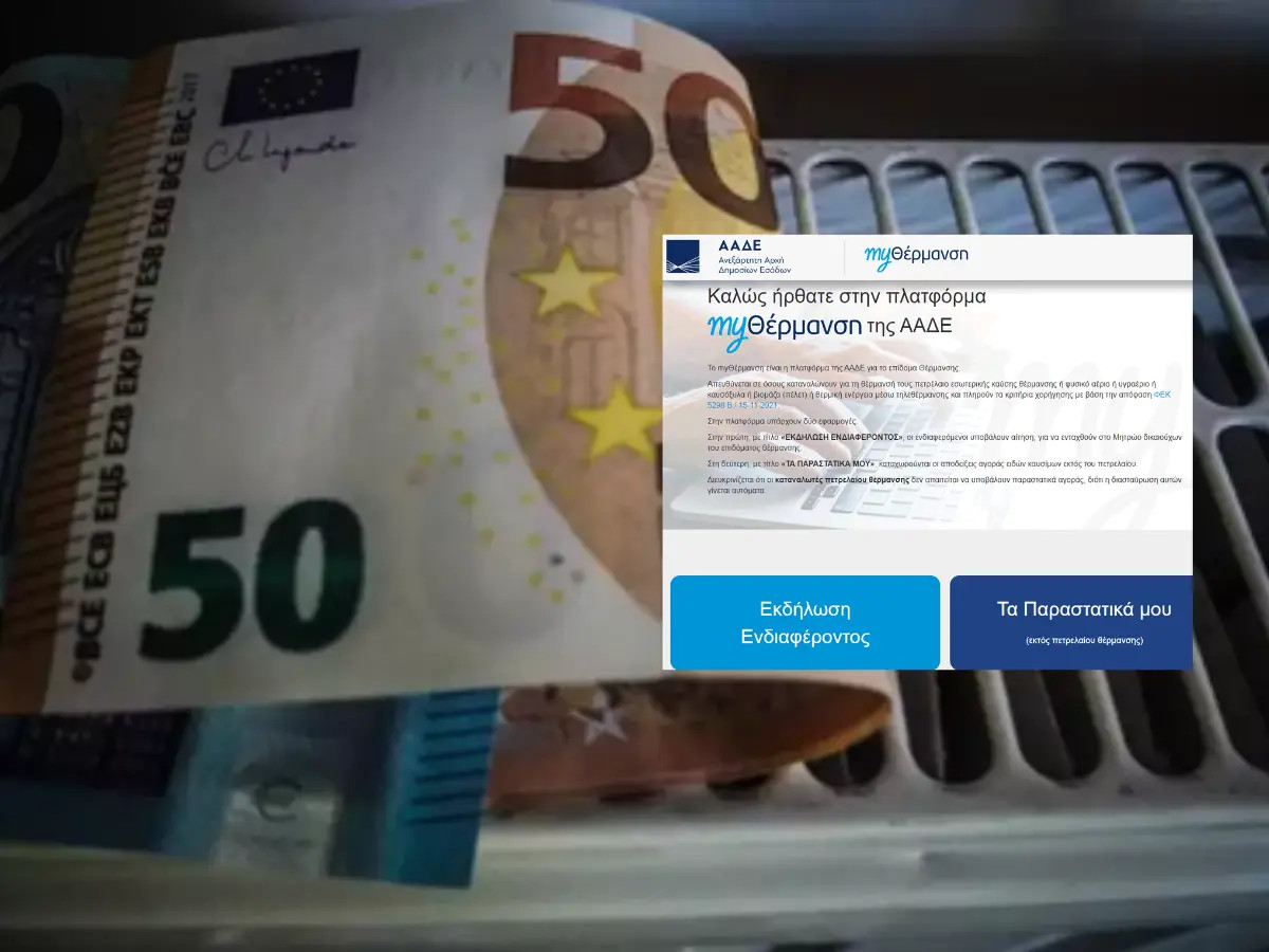 Έτοιμη η πλατφόρμα myΘέρμανση στην ΑΑΔΕ για να δεχτεί τις αιτήσεις για το επίδομα θέρμανσης 2025-2026.